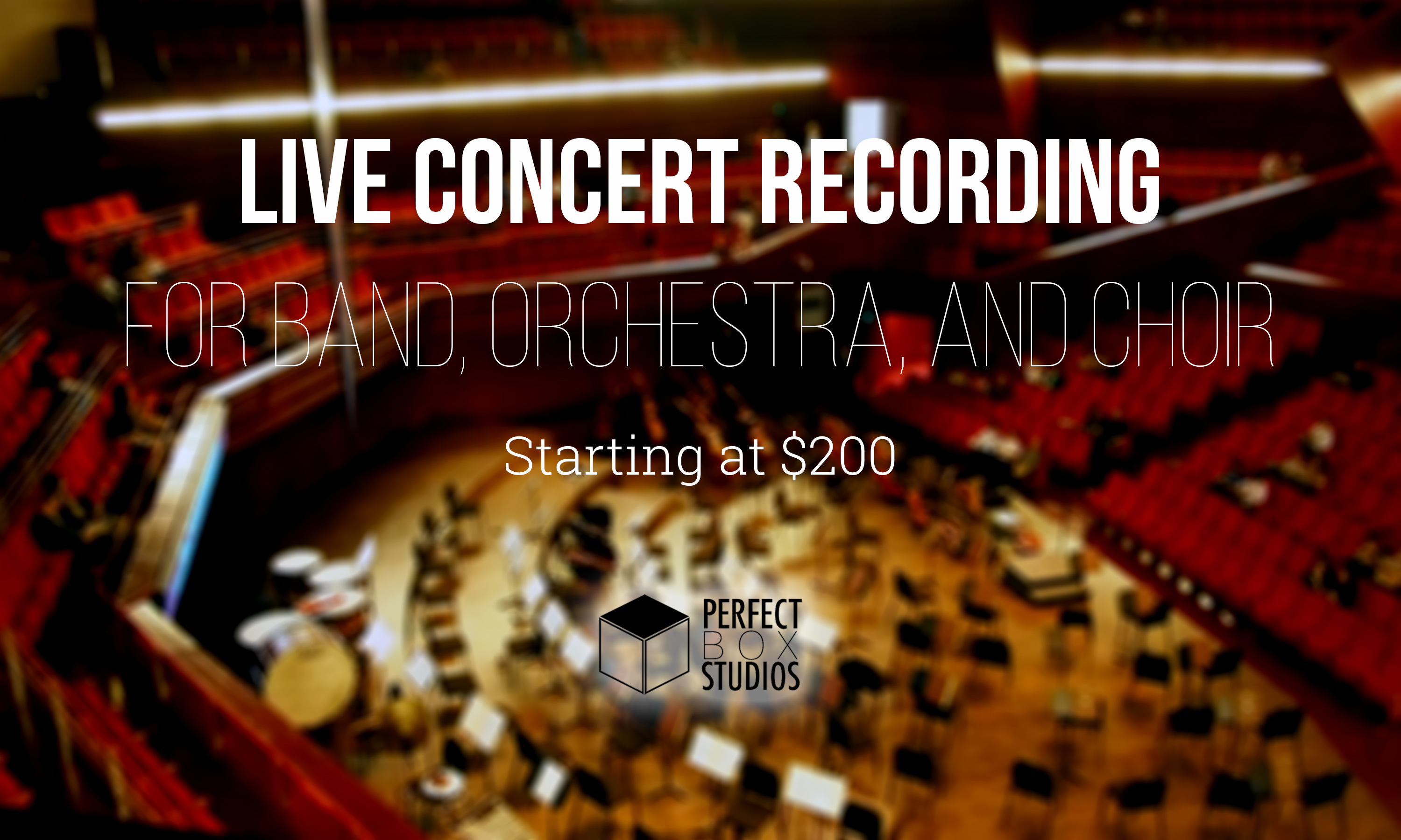 Perfect Box Studios was founded as an On-Location Recording Studio for live symphonic performances. We have a small mobile recording set-up for any live recording situation. When you book an on-location recording appointment with us, we will give you multiple microphone placement options to best fit your performance space. All we need is one power outlet and one row in the audience to set up our equipment. We also offer CD duplication and graphic design services for distribution of the recording afterwards.